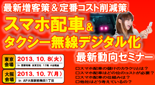 この度、10月7日(月)、10月8日(火)に開催しました『スマホ配車&タクシー無線デジタル化最新動向セミナー』は御蔭様で大変好評のうちに終了しました。