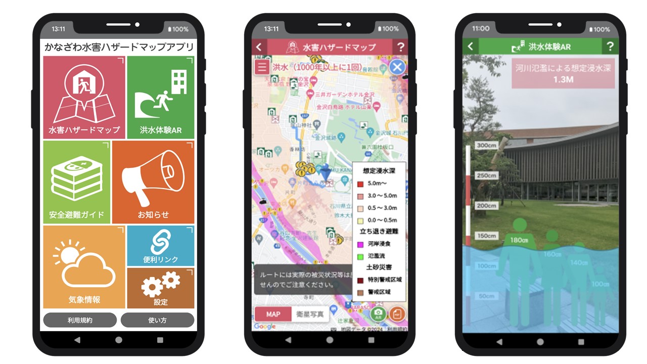 金沢市に、日頃の備えや災害時の迅速・効率的な避難行動を 一体的に支援する「水害ハザードマップアプリ」を納入 ~デジタル利活用の推進で市民の減災意識向上・金沢市DXアクションプランにも貢献~