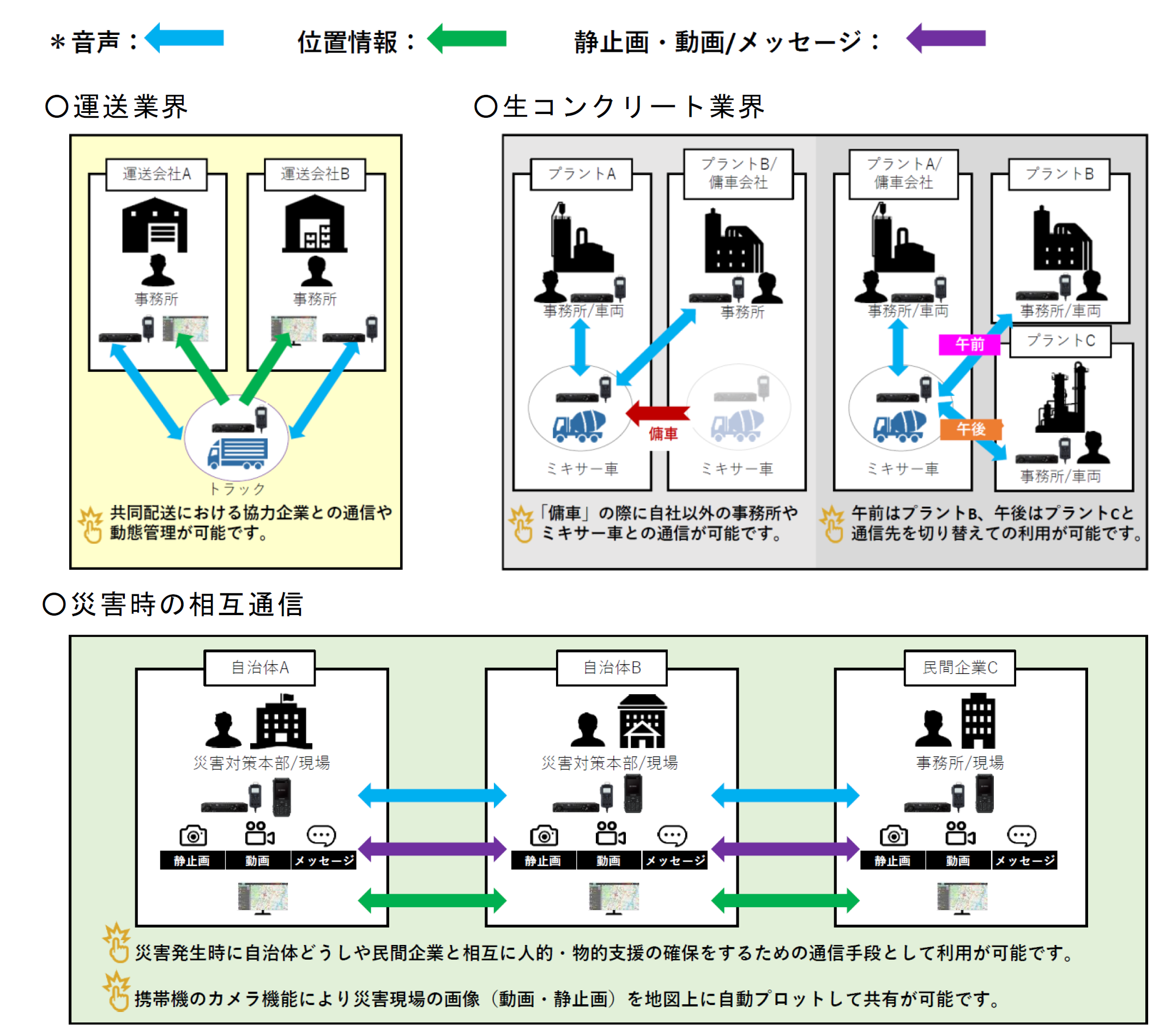 今回、西菱電機が提供する、ソフトバンクのIP無線サービスの新機能「企業間通信機能」は、このような異なる企業・団体間であっても音声通話や動態管理が容易に行えるほか、動画や静止画の共有や、メッセージの送受信が可能となるなど、相互のコミュニケーションにおいて最適なサービスです。