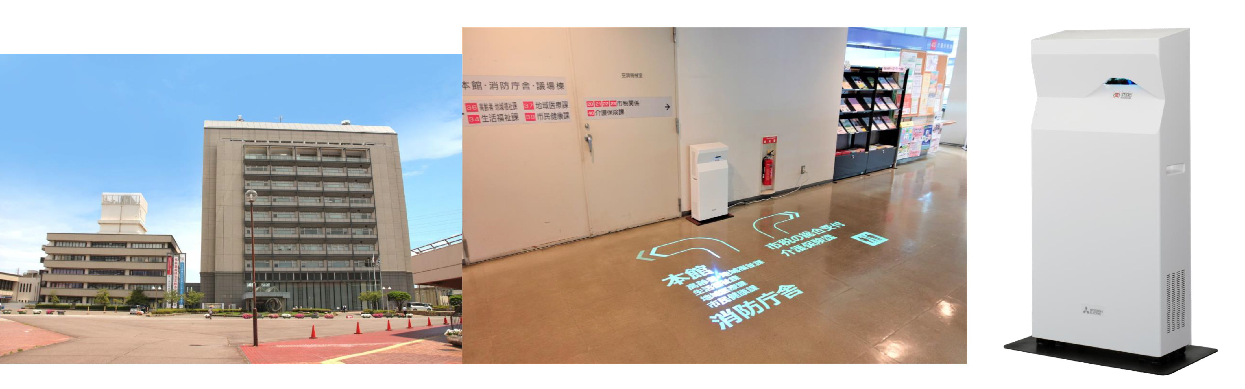 また、「てらすガイド」は、コンセント一つで容易に設置できるほか、簡単操作で表示コンテンツの入れ替えが可能です。案内ポスターや床面ステッカーなどとは異なり、制作や貼り替えに係る手間やコスト、耐久性への心配も不要となるなど、同市のスマートシティ構想が推進する、最新技術による徹底した業務効率化、生産性の向上に加え、同市が推進する職員の働き方改革にも貢献しています。