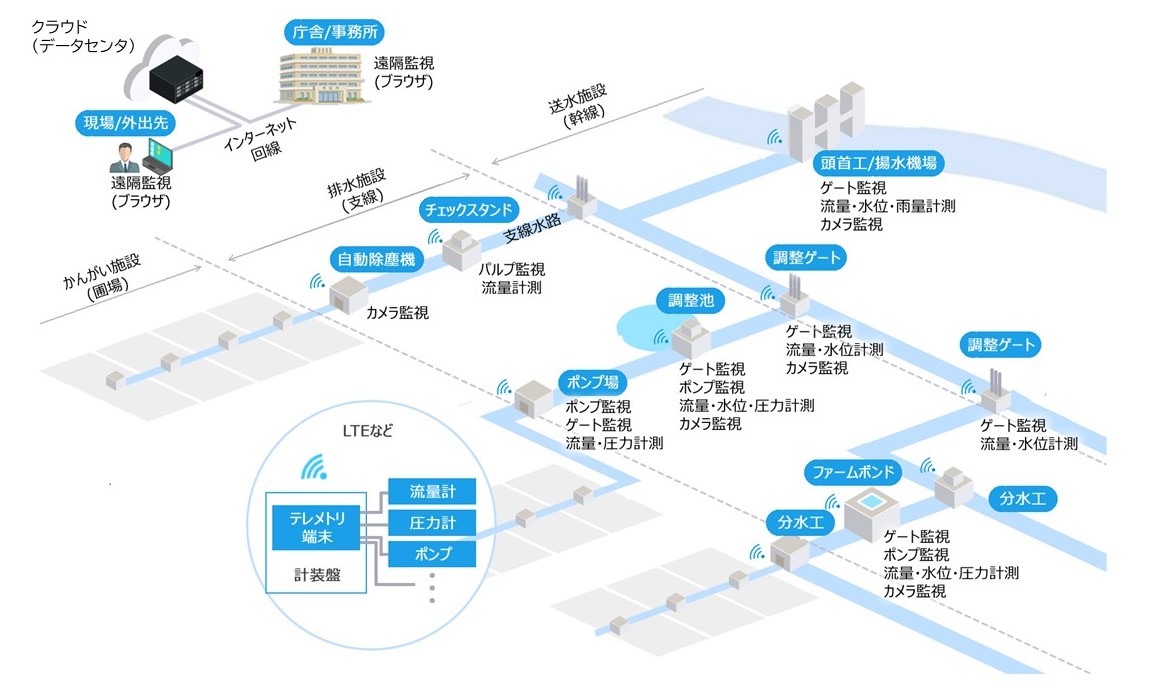 商用電源を引き込めない施設には太陽光発電による構成も可能です。