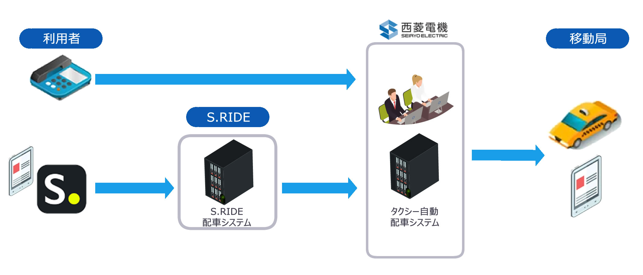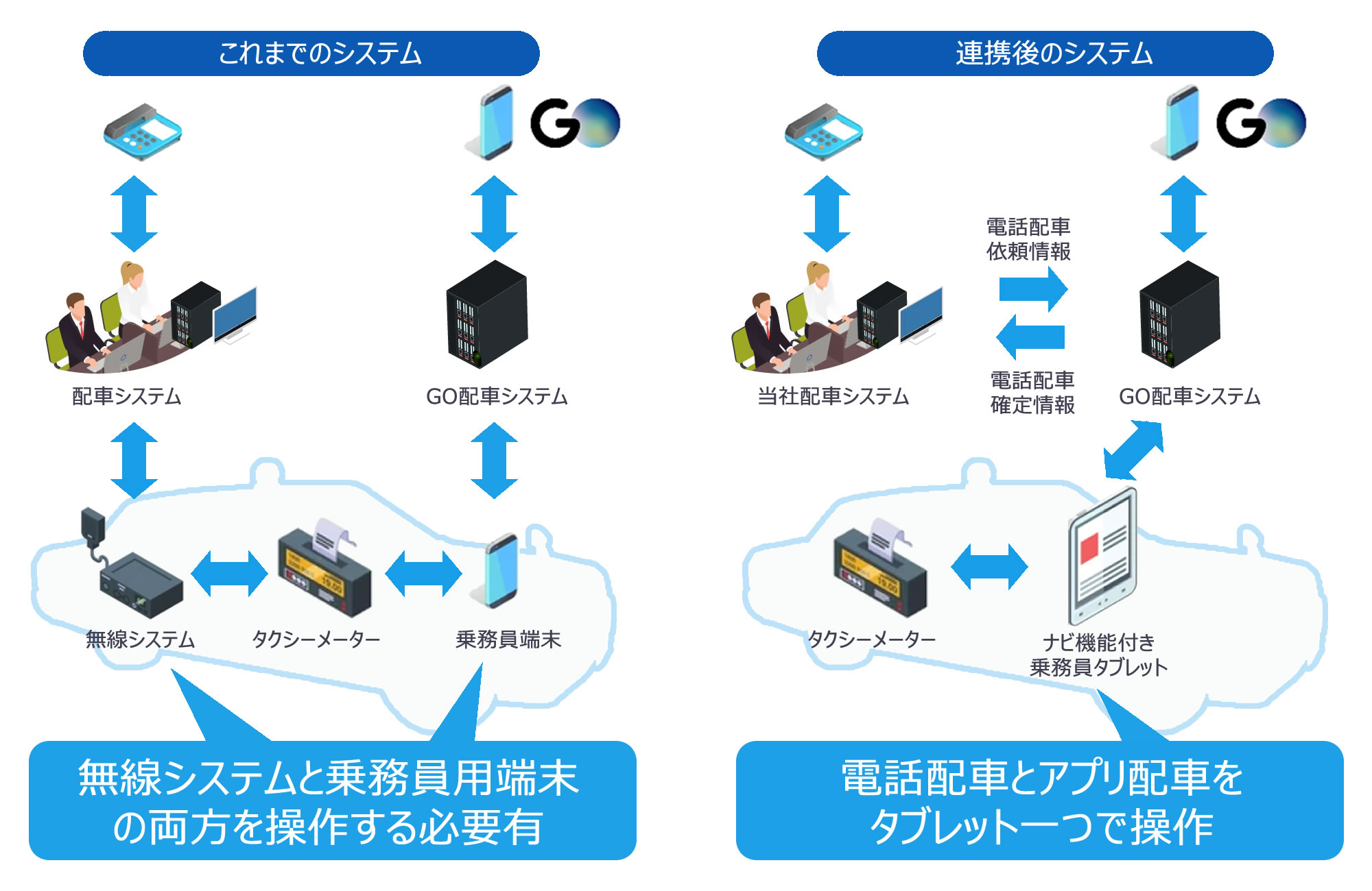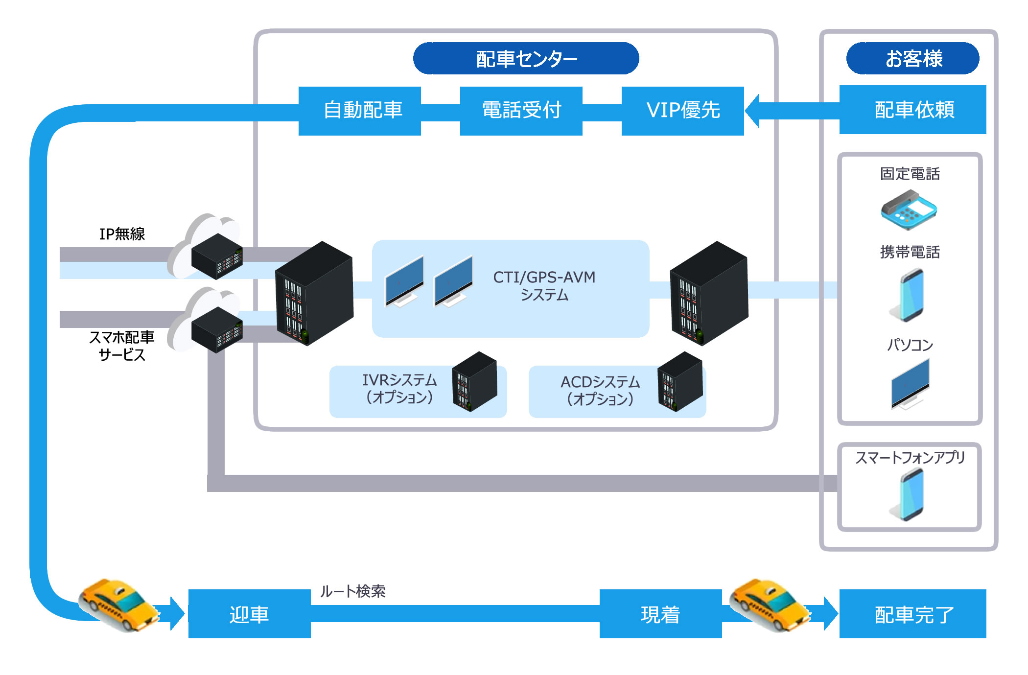 配車依頼の受付から配車までをスピーディーに行えるようにするシステムです。